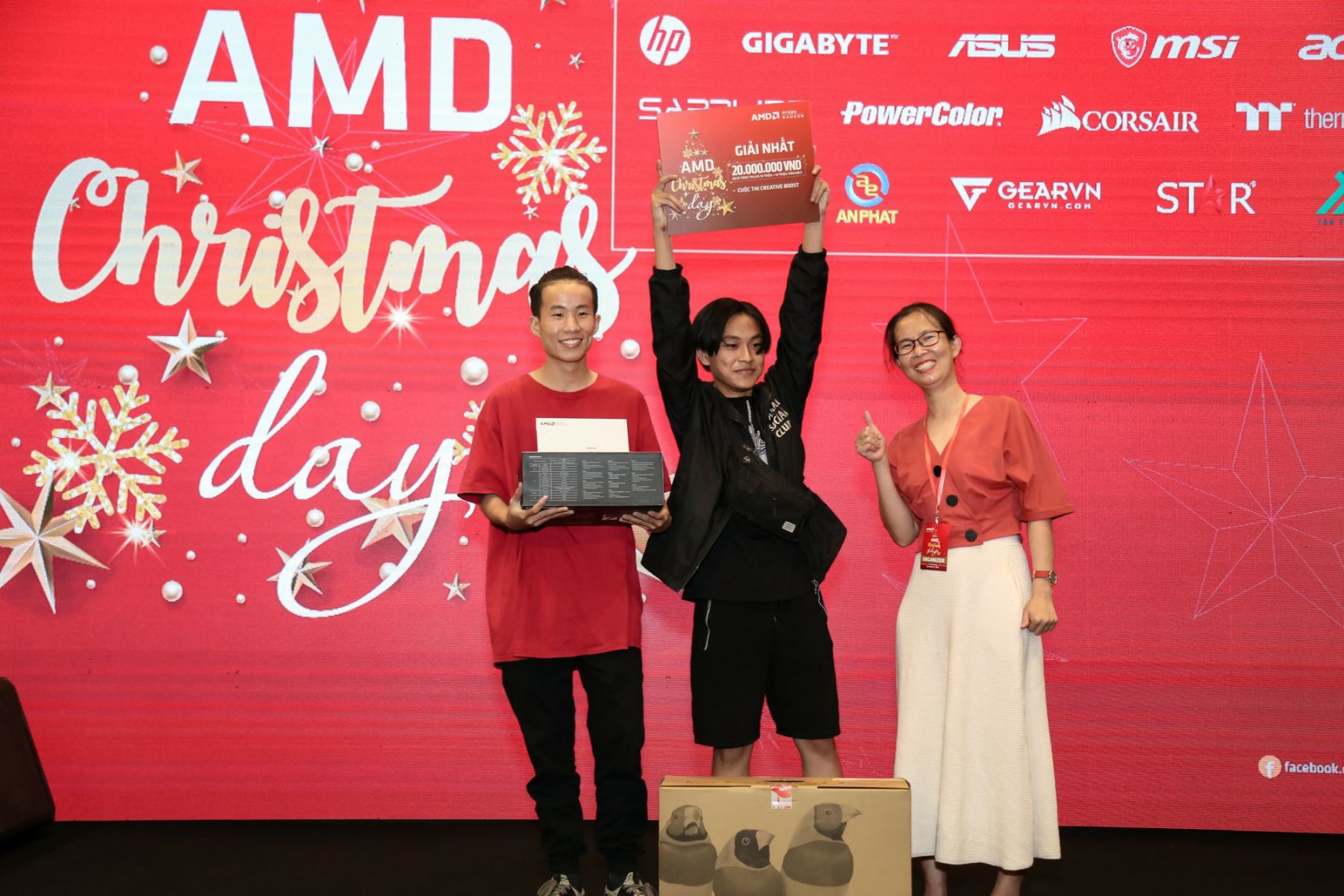 Bên cạnh các hoạt động dành cho khách và các fan tới giao lưu và trải nghiệm công nghệ. AMD cũng tổ chức đêm chung kết AMD Creative Boost với sự tham gia của 2 giám khảo: Giảng viên tại Học Viện Làm Phim - KeyFrame - Nam Trịnh và Đạo diễn hình ảnh từ Yeah1 - Dương Cầm.