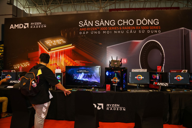 Tại đây mọi người được 'thỏa niềm mong ước' khi tha hồ trải nghiệm những bộ máy tính xịn xò sử dụng nền tảng công nghệ mới của AMD, điển hình như dòng CPU đình đám Ryzen 3000 hay các loại VGA ngon bổ rẻ mới ra là Radeon RX 5500 XT.