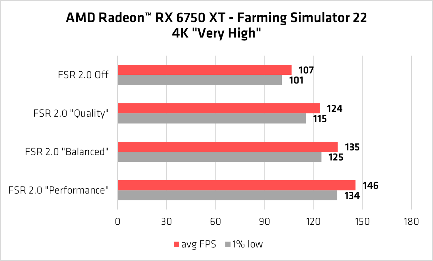 Tuy nhiên, một lưu ý quan trọng là theo mặc định, Farming Simulator 22 bị khóa ở 60 FPS. Trên các card đồ họa cao cấp hơn hoặc mới hơn, để thấy được những lợi ích về hiệu suất mà FSR 2.0 mang lại, bạn cần phải mở giới hạn tốc độ khung hình bằng cách sử dụng các hướng dẫn tại đây*.