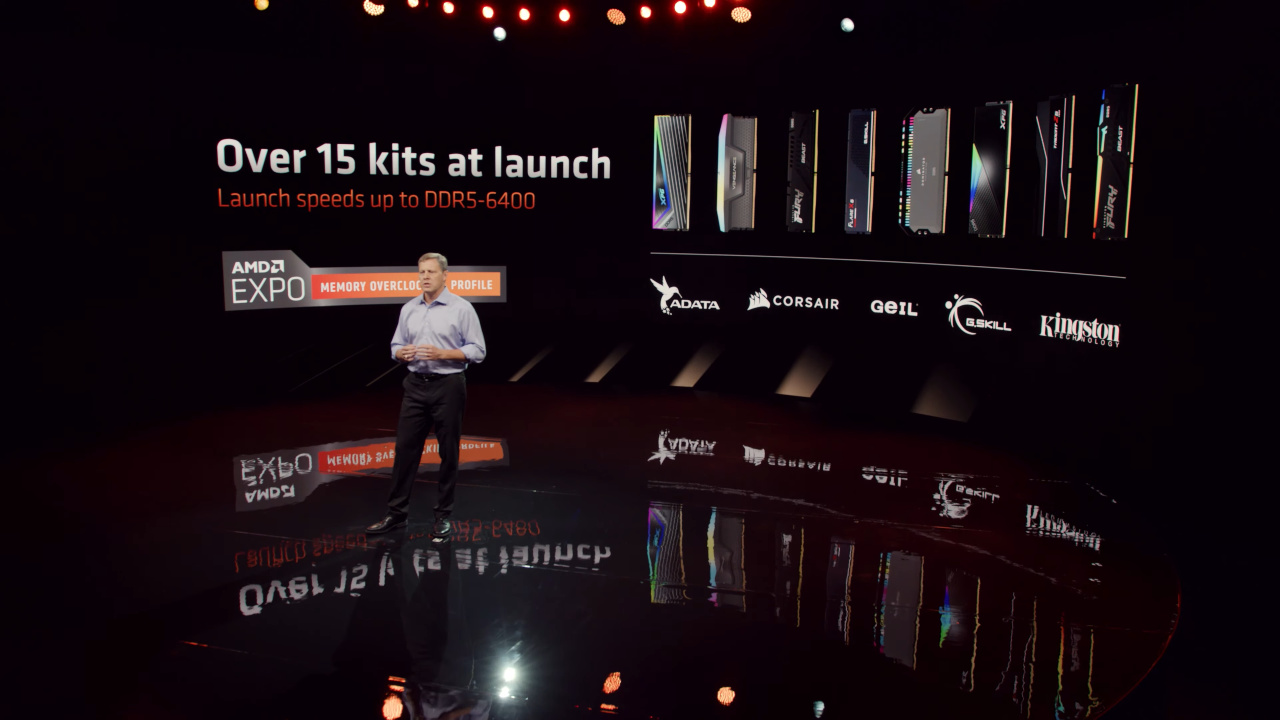 Công nghệ AMD EXPO™ sẽ có mặt trên thị trường cùng lúc với thời gian dòng Ryzen™ 7000 ra mắt, với bộ nhớ từ các đối tác như ADATA, Corsair, GeIL, G.SKILL và Kingston. Sẽ có hơn 15 sản phẩm bộ nhớ hỗ trợ công nghệ AMD EXPO™, với tốc độ bộ nhớ lên đến DDR5-6400.