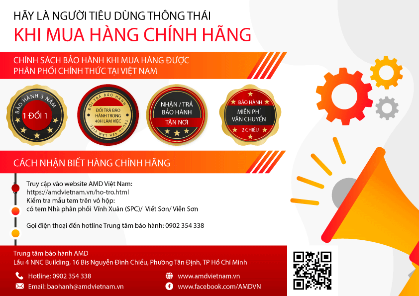- Tra cứu hàng được bảo hành tại AMD Việt Nam theo website: https://amdvietnam.vn/ho-tro.html