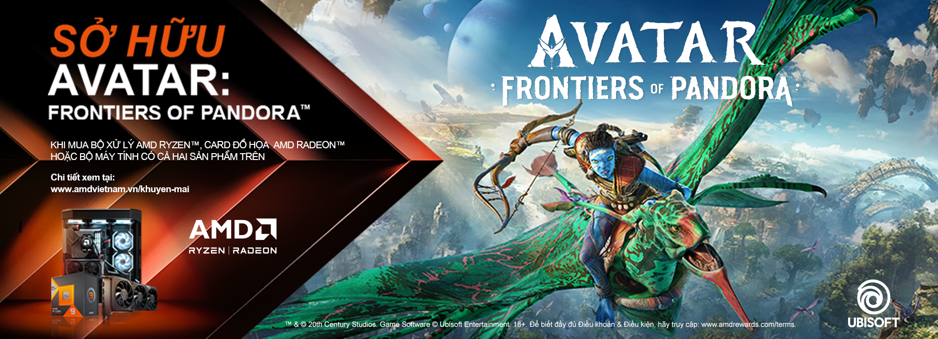 Khách hàng sẽ nhận ngay code game AVATAR: FRONTIERS OF PANDORA™ khi sở hữu CPU AMD RYZEN™ hoặc VGA AMD Radeon™ dưới đây: